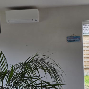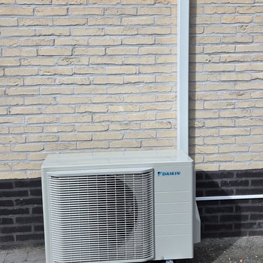 De mono-split. Een simpele installatie die voor veel comfort zorgt. Hier ziet u het Perfera wandmodel van Daikin. Geplaatst in de woonkamer. Prijs-kwaliteit een van de beste toestellen te vinden op de markt. In 2025 verkozen tot airco van het jaar volgens testaankoop. Deze airco levert tot 5kw aan koelvermogen en 6kw verwarming. Deze airco is voorzien van allerlei snufjes voor het ideaal comfort. Zoals de sensor die personen waarneemt en de luchtstroom automatisch aanpast. Deze installatie is de simpelste uitvoering mogelijk, binnentoestel en buitentoestel bevinden zich op dezelfde gevel. Dit is ook te zien aan de scherpe prijs.