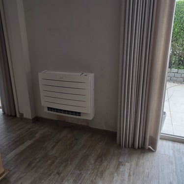 In dit gelijkvloers appartement hebben ze de oude accumulator vervangen met een warmtepomp van Daikin. Het perfera vloermodel is een uitstekende oplossing in deze situatie. Het toestel van 5kw koeling / 6kw verwarming zorgt zonder moeite voor een optimaal comfort. Het hoge rendement zorgt ervoor dat dit de perfecte investering is. Weg met energieverslindende elektrische verwarming!